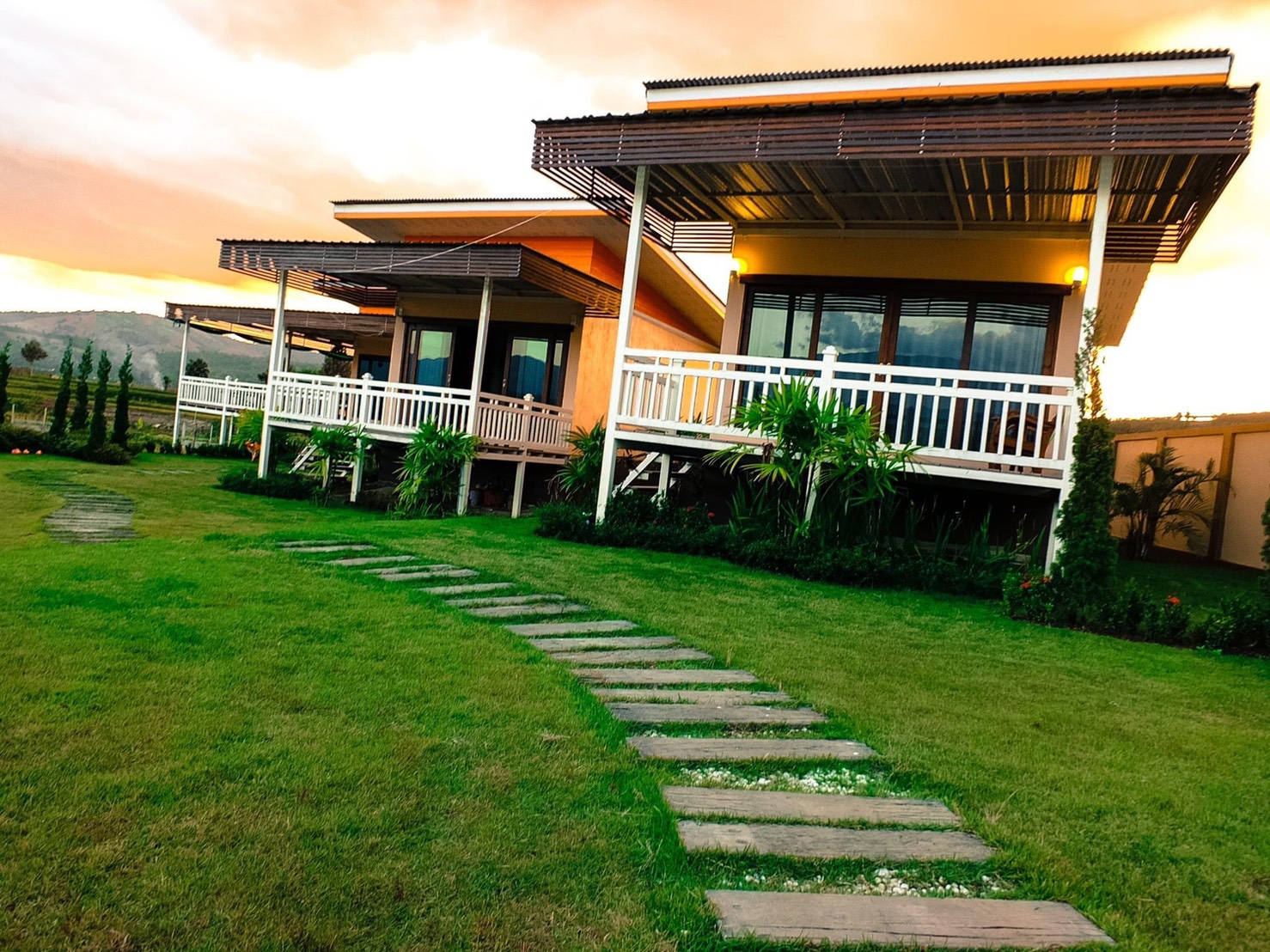 บ้านขนาดเล็ก 1 ห้องนอน สนามหญ้ากว้าง วิวภูเขาล้อมอรอบ มีบริการอินเทอร์เน็ตไร้สาย (WiFi) ฟรีและที่จอดรถส่วนตัวฟรี ที่ ทุกห้องมีห้องน้ำแบบส่วนตัวพร้อมฝักบัวและเครื่องใช้ในห้องน้ำ